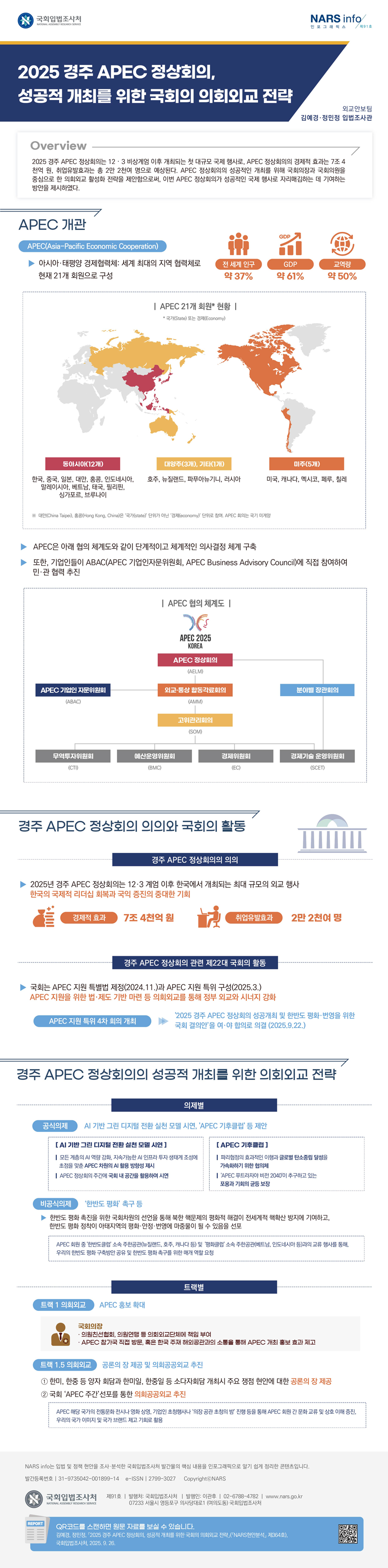 ※ 원문 자료ㅣ김예경, 정민정, 「2025 경주 APEC 정상회의, 성공적 개최를 위한 국회의 의회외교 전략」(『NARS현안분석』 제364호), 국회입법조사처, 2025. 9. 26.