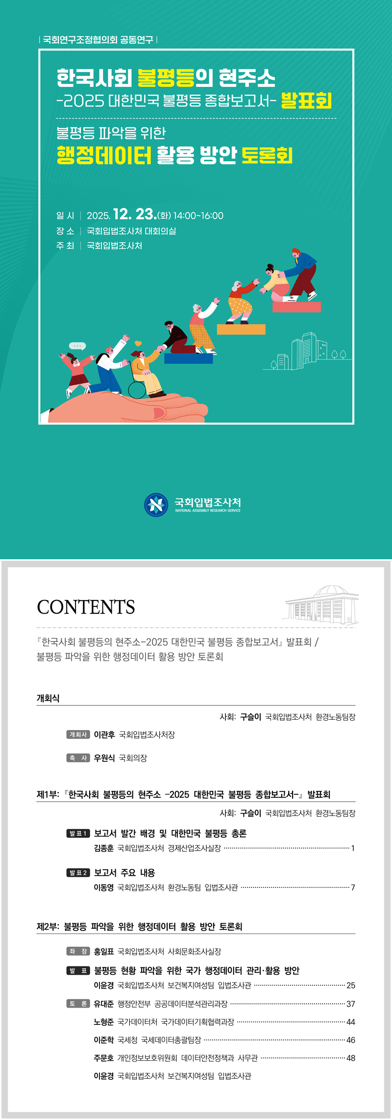 『한국사회 불평등의 현주소 - 2025 대한민국 불평등 종합보고서』 발표회 및 불평등 파악을 위한 행정데이터 활용 방안 토론회 자료집