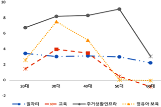 [그림 2] 부문별 지수가 연령대별 총인구에 미치는 영향